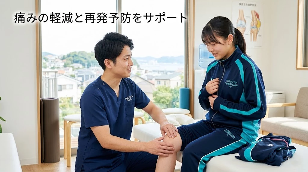 - 完全に休むよりも、痛みを強める動作を減らしつつ続ける相対的安静が合う場合があります。大切なのは、練習量と強度の調整、膝を伸ばし切る癖の修正、着地の受け方の再学習です。横須賀市の鍼灸整骨院ひまわり北久里浜院、鍼灸整骨院ひまわり衣笠院では、競技継続と回復の両立を前提に段階的な復帰を組み立てます。