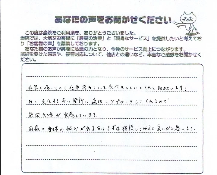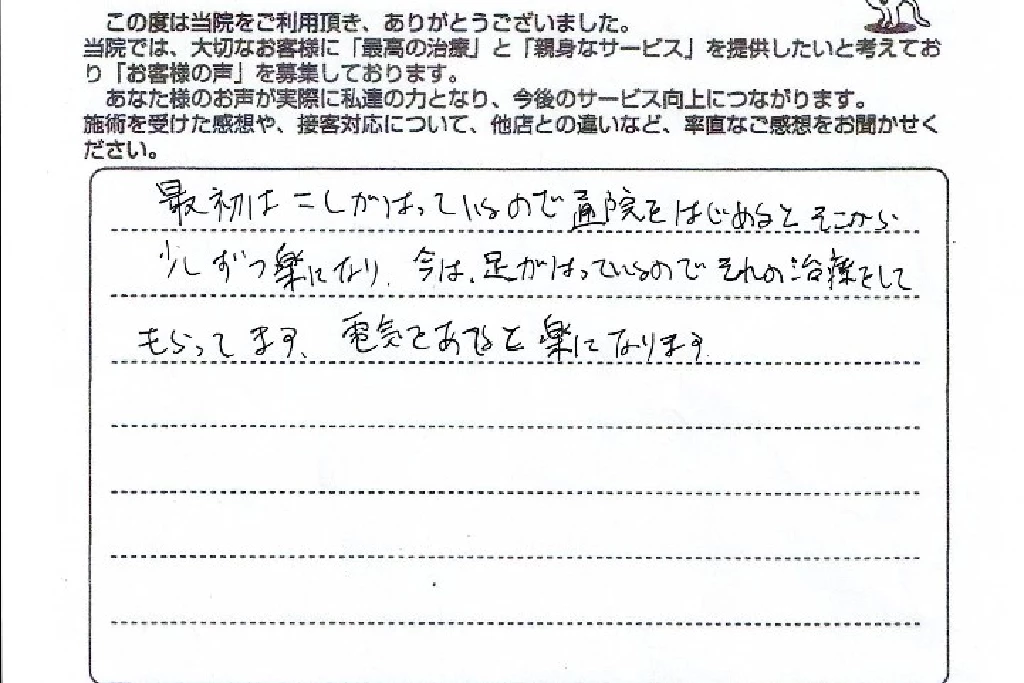 私たちは、あなたが痛みの不安なく、快適な毎日を送れるよう全力でサポートします。