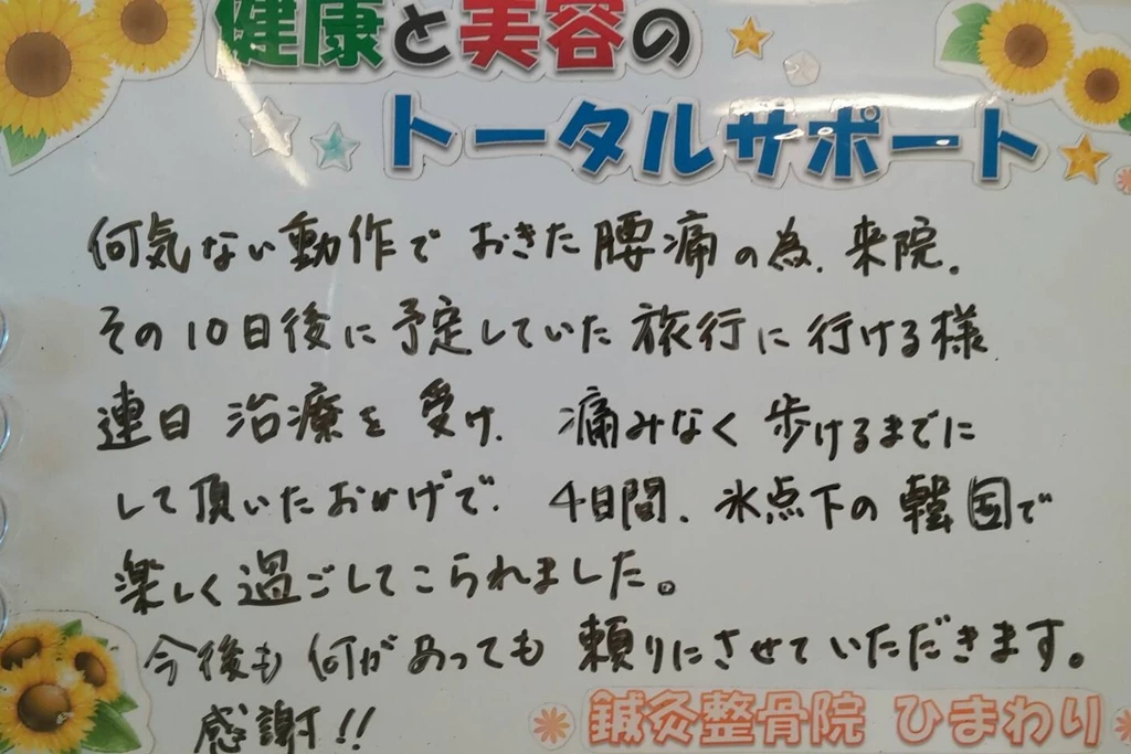鍼灸整骨院ひまわりへ、ぜひ一度ご相談ください。