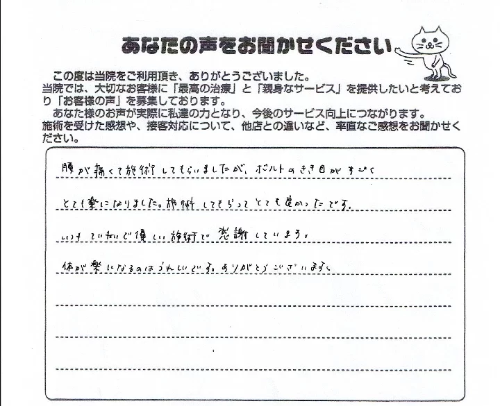 私たちは、あなたが痛みの不安なく、安心して毎日を過ごせるよう全力でサポートします。