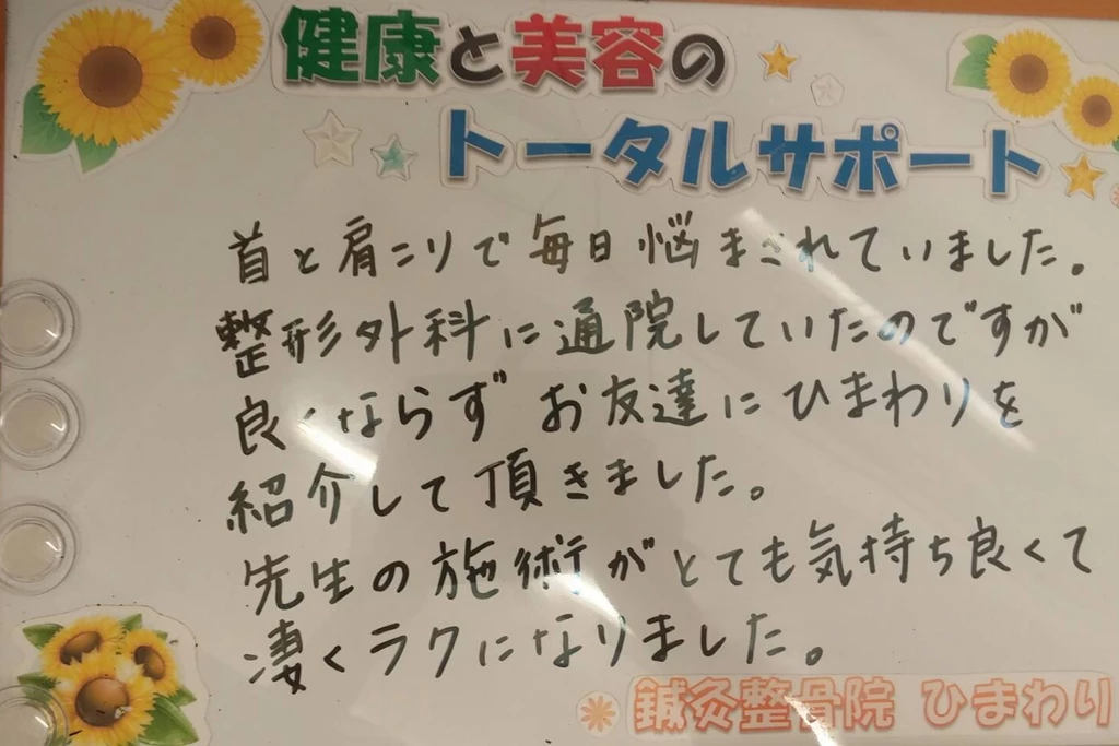 首・肩の痛みが改善しました|鍼灸整骨院ひまわり北久里浜院(横須賀市)