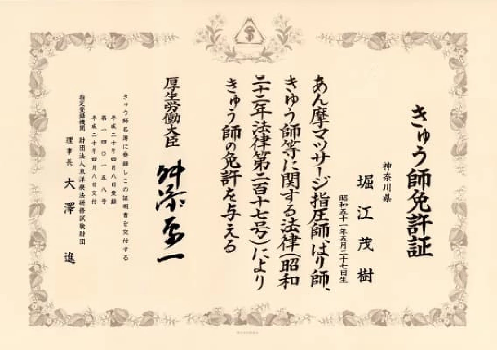 その後、施術の幅を広げるために、鍼灸師の資格を取得し、32歳の時に横須賀市北久里浜に自身の整骨院を開業しました。柔道整復師としての経験と鍼灸師としての知識を生かし、患者様に対して的確で効果的な施術を提供しています。